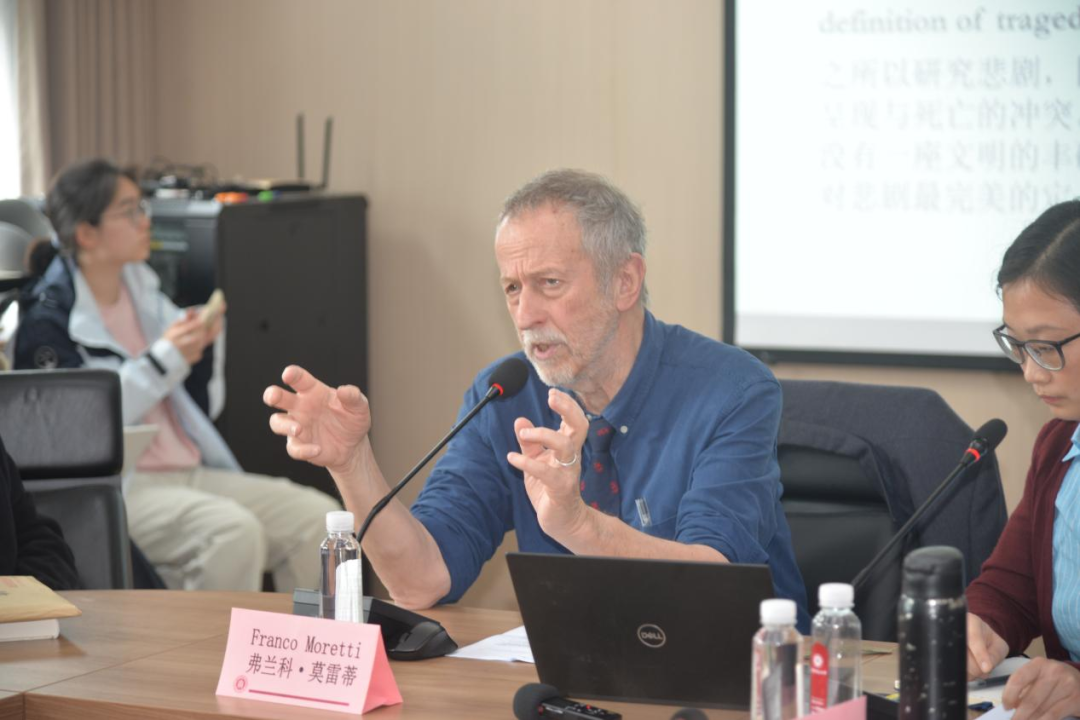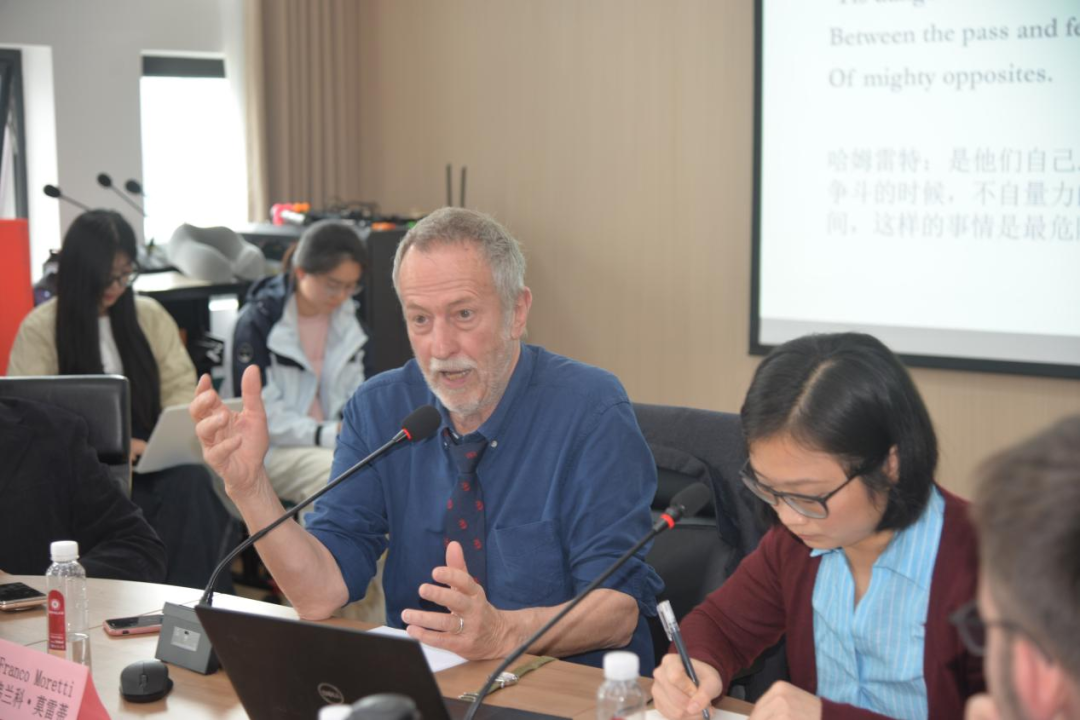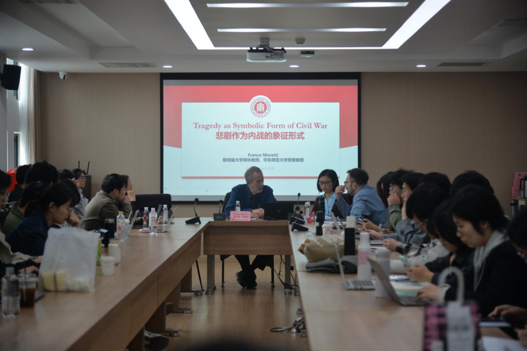 2026年4月14日下午,斯坦福大学教授、华东师范大学荣誉教授弗兰科·莫雷蒂(Franco Moretti)受邀做客思勉人文高等研究院,在华东师范大学闵行校区主讲思勉人文讲座第549场,主题为“悲剧作为内战的象征形式”。讲座由ag官网-ag娱乐城-亚游ag 、国际汉语文化学院联聘教授朱国华主持,ag官网-ag娱乐城-亚游ag 副教授山谷(Diego Gullotta)以及来自思勉高研院、ag官网 、历史学系、哲学系等的师生共同出席。